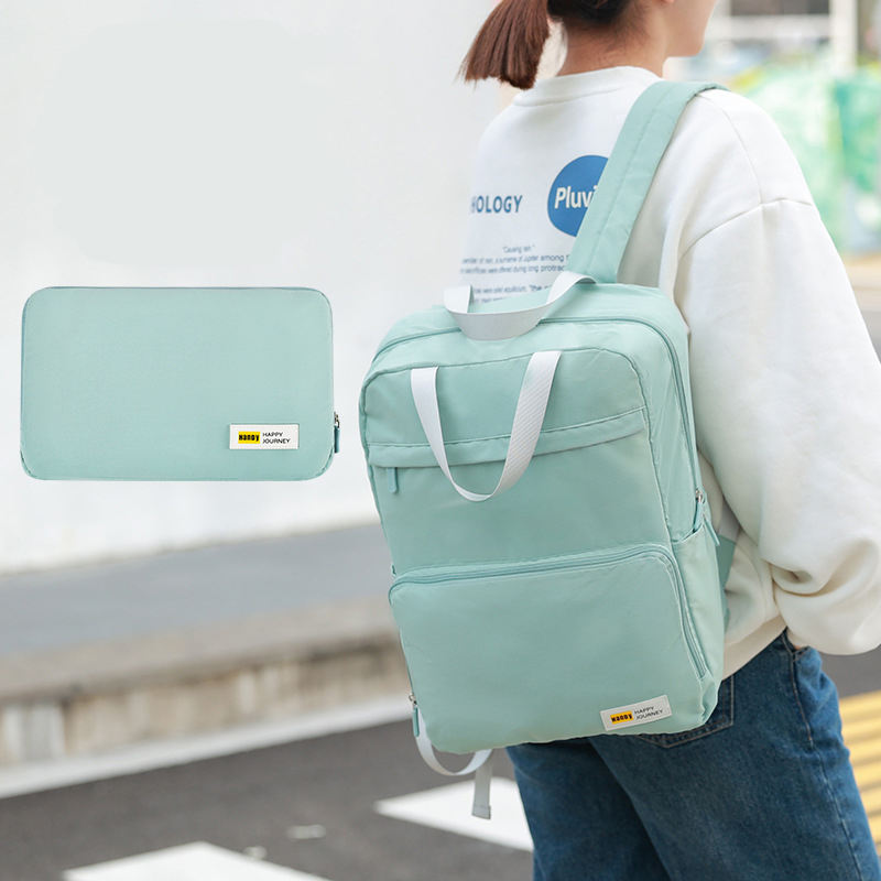 กระเป๋าเป้ผ้าโพลีเอสเตอร์น้ำหนักเบาพับได้กระเป๋าเป้สะพายหลังกลางแจ้งกันน้ำมีซิปปิดแฟชั่นสีดำ
