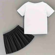 ชุดวอร์มสำหรับเด็กผู้หญิงชุดวอร์มแขนสั้นแบบมีการฉีกขาดพิมพ์ลายสีดีไซน์พิเศษสำหรับฤดูร้อน