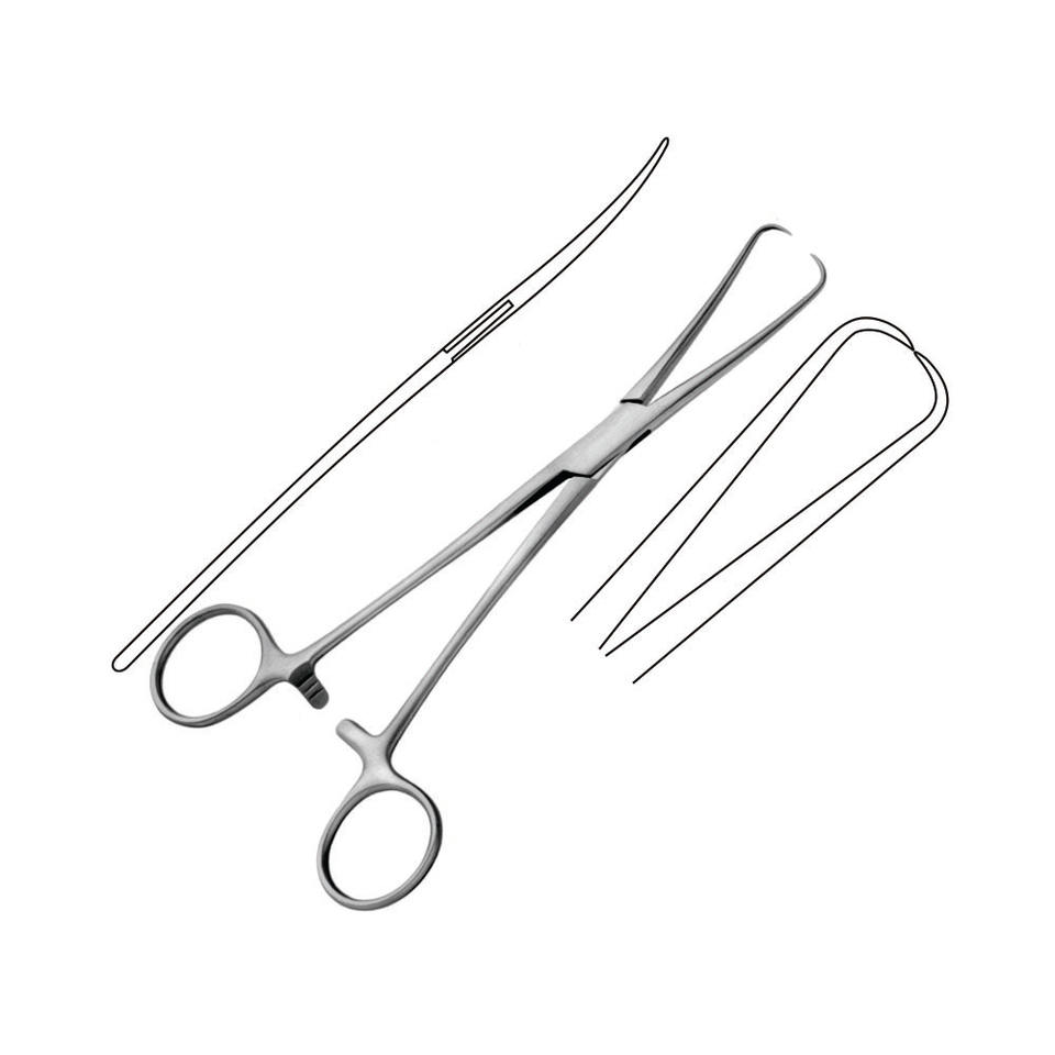 คีมจับเนื้อเยื่อชั้นผนังหน้าผิวหนังคุณภาพสูง โค้งเล็กน้อย ฟัน 1x2 ขนาด 21 ซม. ทำจากสแตนเลส คีมโคเชอร์สำหรับการผ่าตัด
