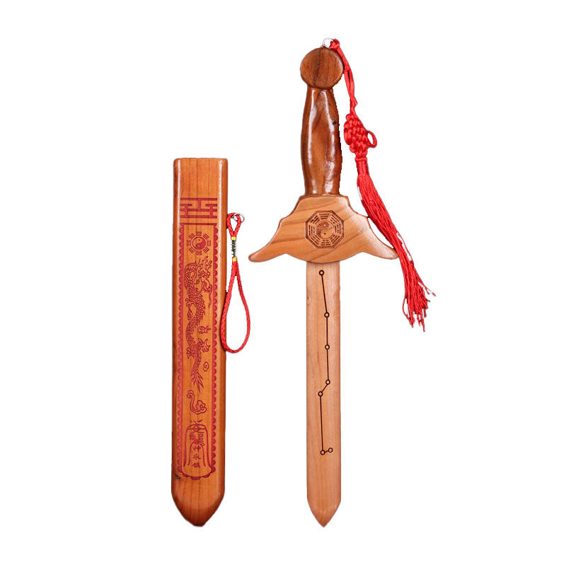 ดาบไม้ลูกพีชฮวงจุ้ยเสน่ห์นำโชคสำหรับการวาดภาพความมั่งคั่งและการป้องกันความชั่วร้าย