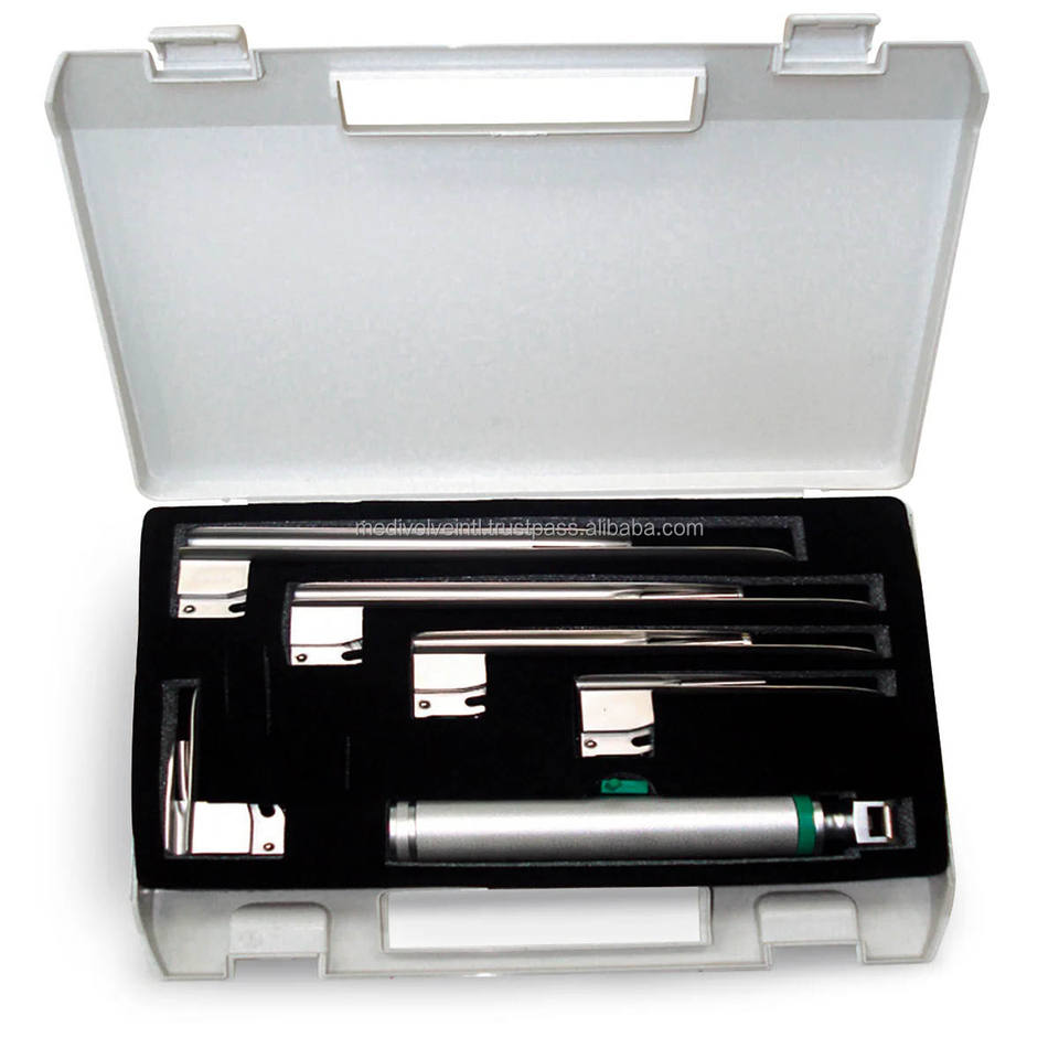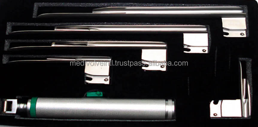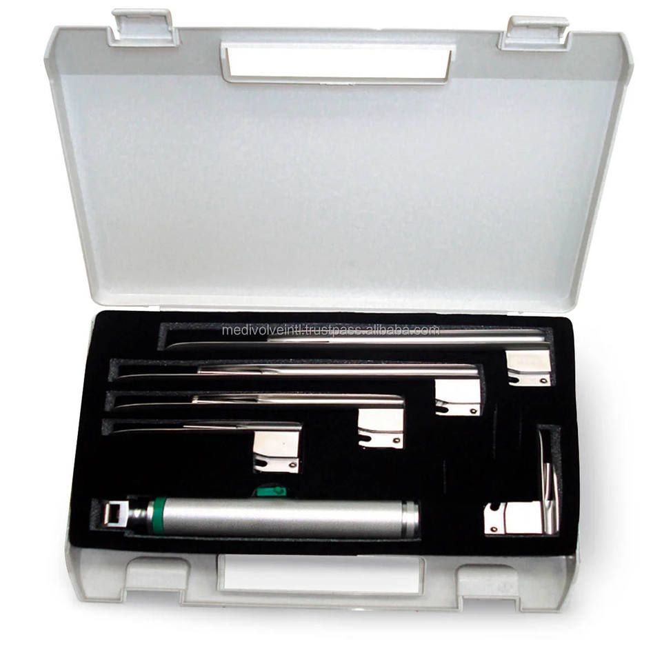ชุดเครื่องมือส่องกล่องเสียงแบบใยแก้วนำแสงคุณภาพสูง Miller Laryngoscope 5 ใบมีดตรง สำหรับการใส่ท่อช่วยหายใจทางหู คอ จมูก และสัตว์ ได้รับมาตรฐาน CE Medivolve ผลิตจากสแตนเลสสตีล รับประกัน 1 ปี