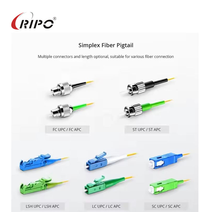อุปกรณ์ไฟเบอร์ออปติกคุณภาพสูง Ripo 12-ไฟเบอร์ 1-ไฟเบอร์ พร้อมหัวต่อ SC ขนาด 0.9 มม./2.0 มม./3.0 มม. สายไฟเบอร์แบบมีปลอกหุ้มสีรหัสสัญลักษณ์