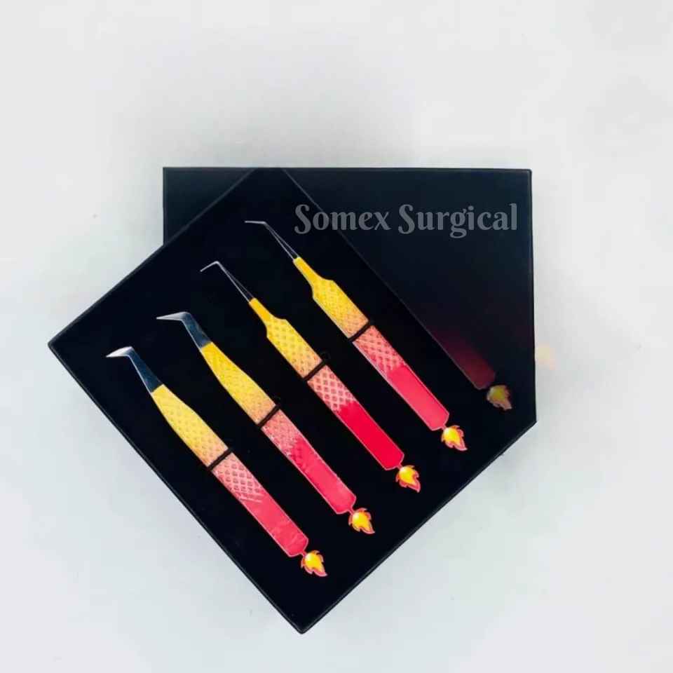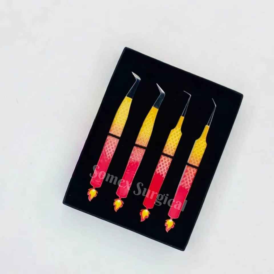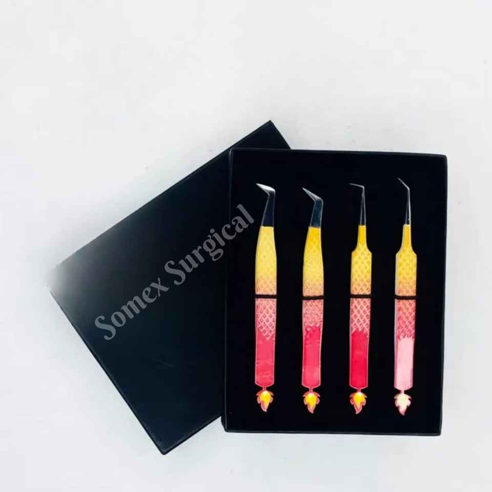 แหนบปลายไฟเบอร์คุณภาพสูงสำหรับต่อขนตา ทำจากสแตนเลส พร้อมกล่องเก็บหลายชิ้น
