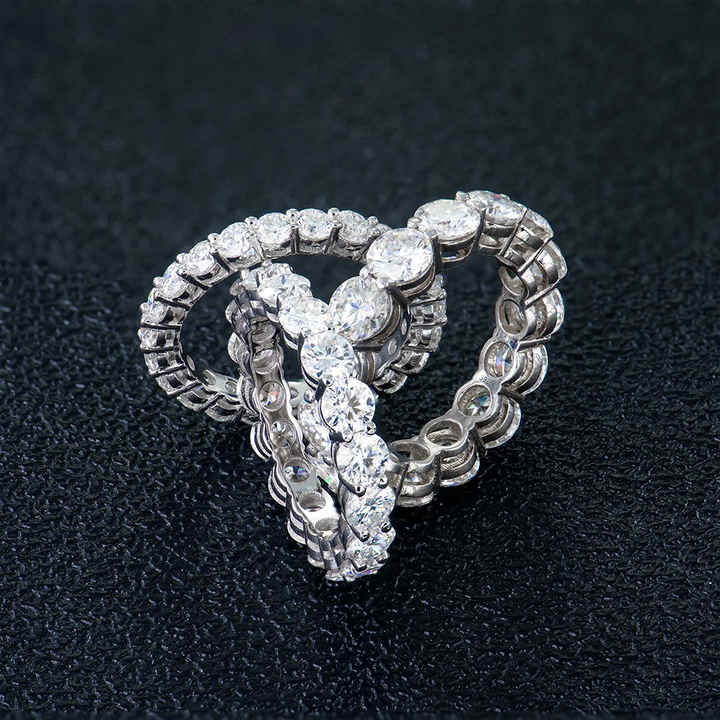 แหวนเพชรโมอิสซาไนต์ทรงกลมแบบฝังเพชรเต็มวง ชุบทองคำขาว 925 เงินแท้ คุณภาพสูง ดีไซน์หรูหรา สไตล์ฮิปฮอป สำหรับผู้หญิง