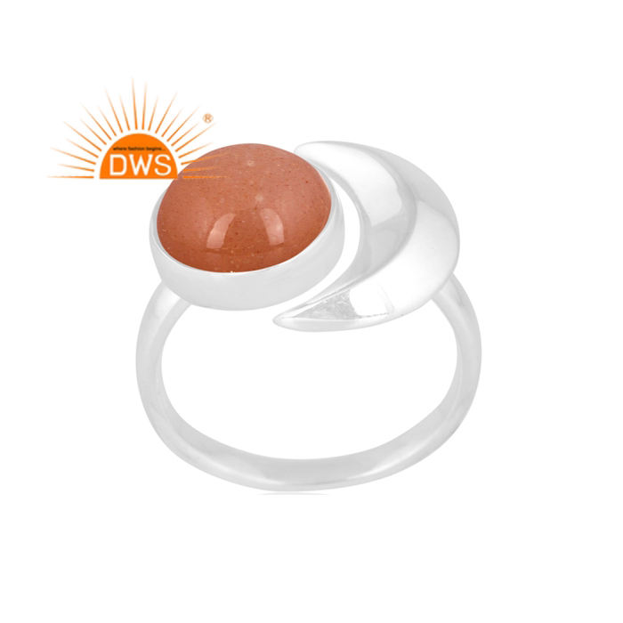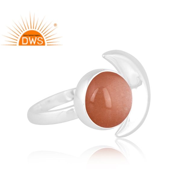 แหวนพลอยสีพีชมูนสโตนปรับได้ทำจากเงินสเตอร์ลิงประดับหินพระจันทร์ครึ่งเสี้ยวตามสั่ง