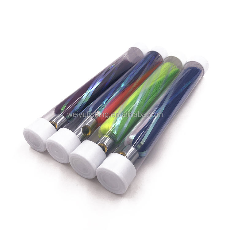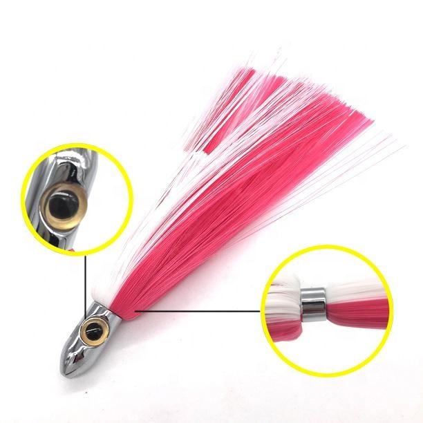ตัวล่อย้อนกบลาสเชอร์ตกปลาชุบโครเมียมหัวพลาสติกและกระโปรงไนลอนเกมใหญ่เหยื่อล่อปลาทูน่าตกปลา