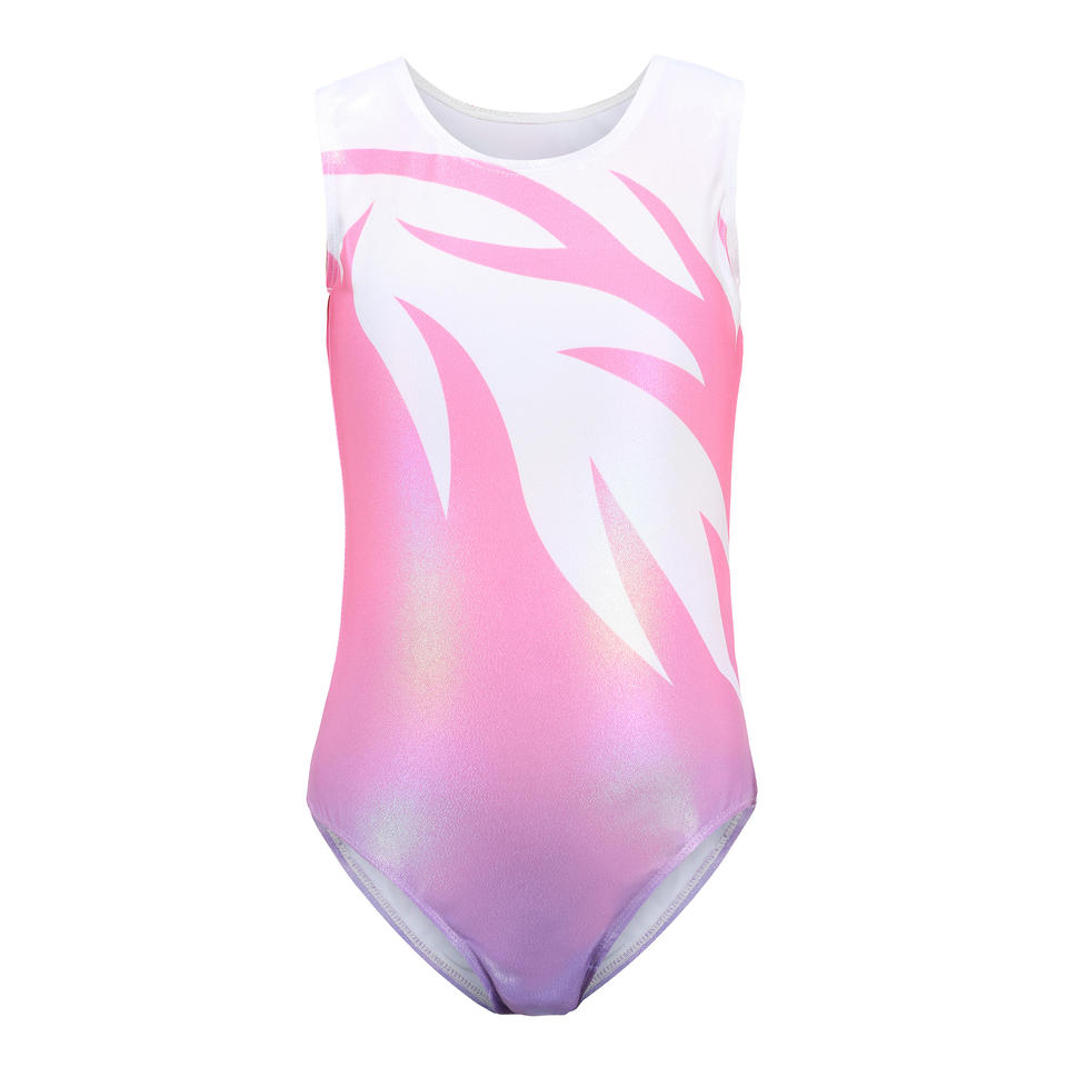 ชุดรัดรูปยิมนาสติกแขนกุดสำหรับเด็กผู้หญิงชุดรัดรูปลายเปลวไฟออกแบบโลโก้ได้ตามต้องการผลิตจากผ้าสแปนเด็กซ์เนื้อนุ่ม