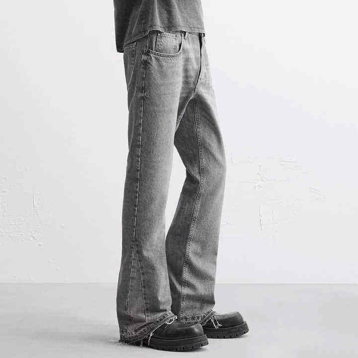 กางเกงยีนส์ทรงขาบานคุณภาพสูงสำหรับผู้ชาย สวมใส่สบายๆ และสไตล์สตรีทแฟชั่น
