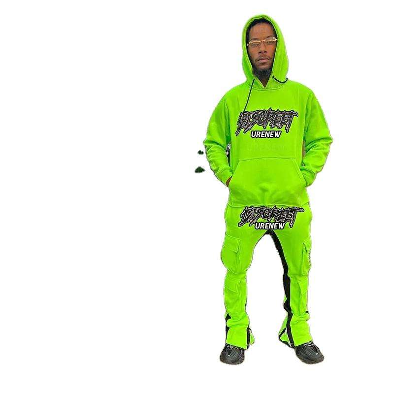 ชุดวอร์มฤดูหนาววินเทจสำหรับผู้ชายชุดวิ่งจ๊อกกิ้งขนแกะยูนิเซ็กส์เสื้อฮู้ดปักแป้งพัฟแบบกำหนดเองชุดเสื้อฮู้ดโอเวอร์ไซส์และชุดวอร์ม600gsm เทอร์รี่มีฮู้ดน้ำหนักมาก