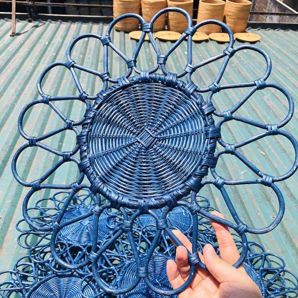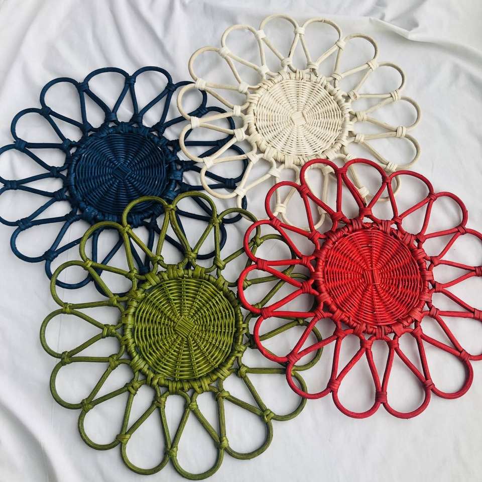 ที่รองจานหวายรูปดอกไม้ทรงกลมถักด้วยมือสำหรับโต๊ะอาหารอุปกรณ์ตกแต่งบ้าน