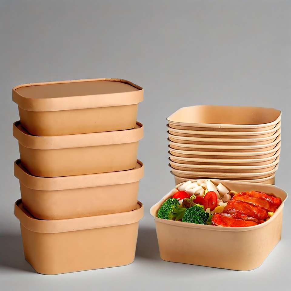 กล่องอาหารกระดาษคราฟท์สีน้ำตาลทรงสี่เหลี่ยมคุณภาพสูง เกรดอาหาร เป็นมิตรกับสิ่งแวดล้อม กันน้ำ พร้อมฝาปิด