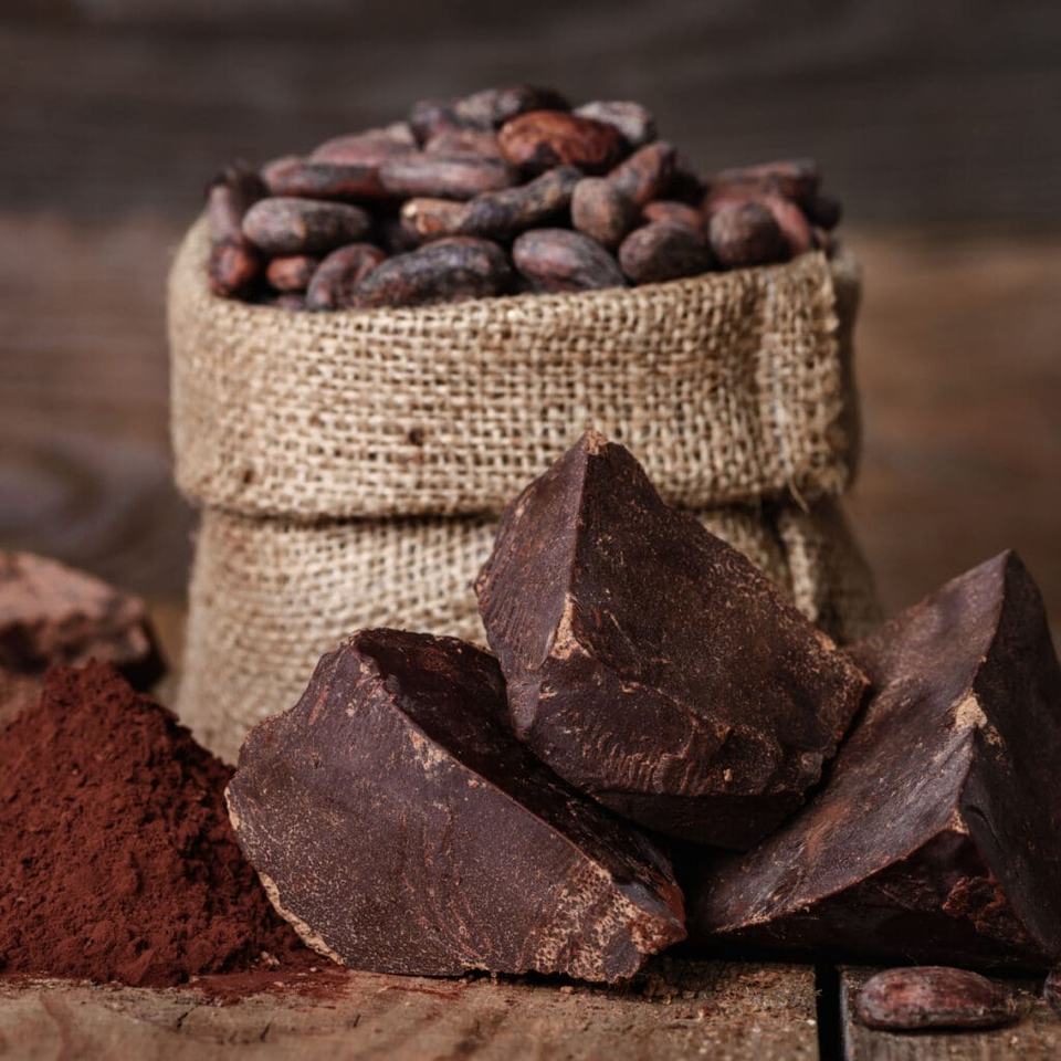 100% เมล็ดโกโก้ที่หมักแห้งและแปรรูปแล้วส่วนผสม