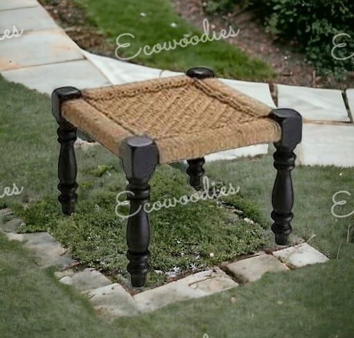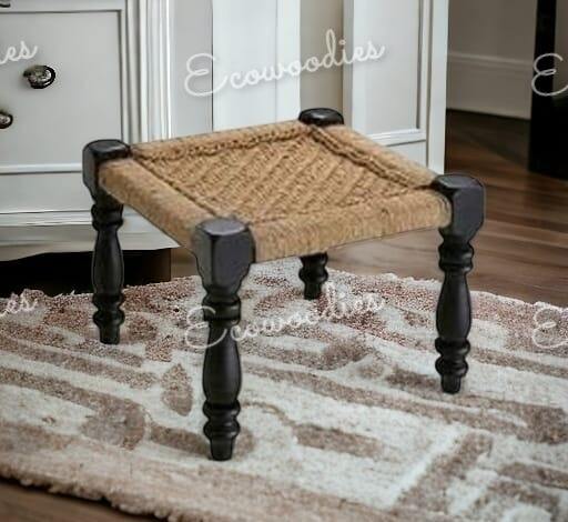 ม้านั่งทำจากไม้สานมือสำหรับงานไม้หวายออตโตมันฝังกระดูกคอนโซล