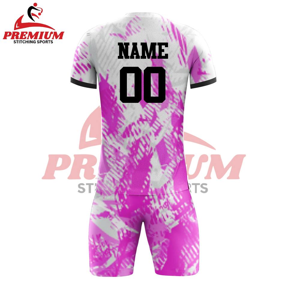 ชุดฟุตบอลคุณภาพสูง แขนสั้น ผลิตจากโพลีเอสเตอร์ 100% แห้งเร็ว พร้อมลายพิมพ์แบบซับลิเมชั่น และโลโก้แบบกำหนดเอง