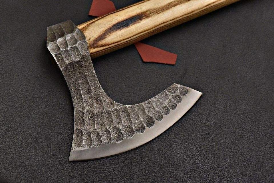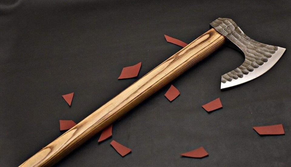 ขวานรagnar ไวกิ้ง คุณภาพสูง ผลิตจากเหล็กกล้าคาร์บอน ใบมีดคม ขวานทำมือ ดีไซน์เฉพาะตัว พร้อมใช้งานในศึก ขวานยาวมีหนวด