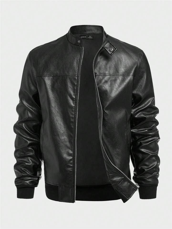 แจ็กเก็ตหนังแบบทางการคอตั้งโลโก้ด้านหน้า
