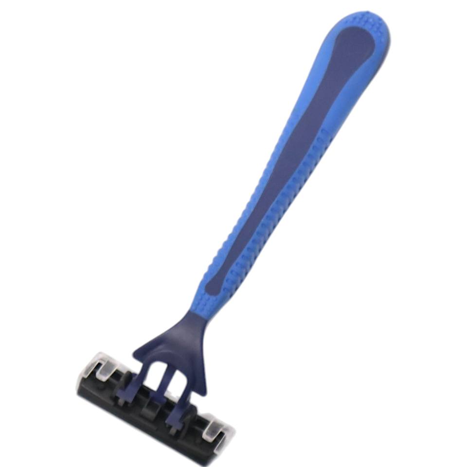 มีดโกนสแตนเลสใบมีดสี่ใบมีดพร้อมที่จับพลาสติกผลิตภัณฑ์โกนหนวดเรียบและปิด