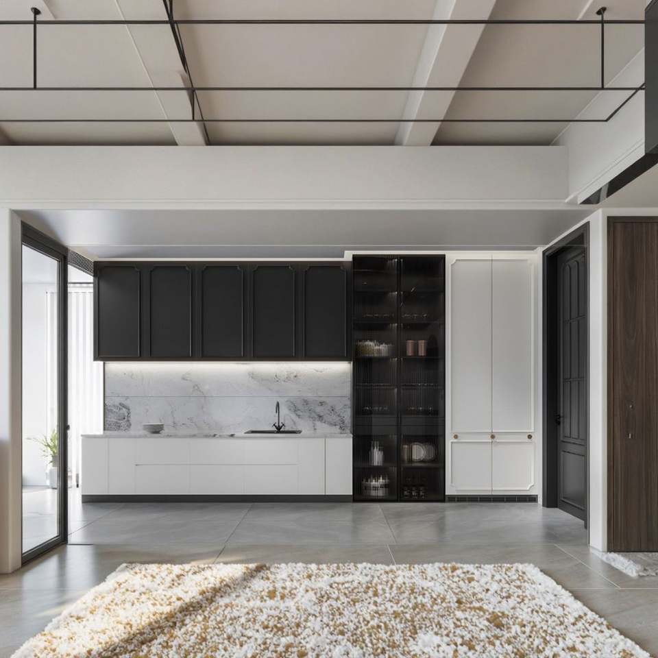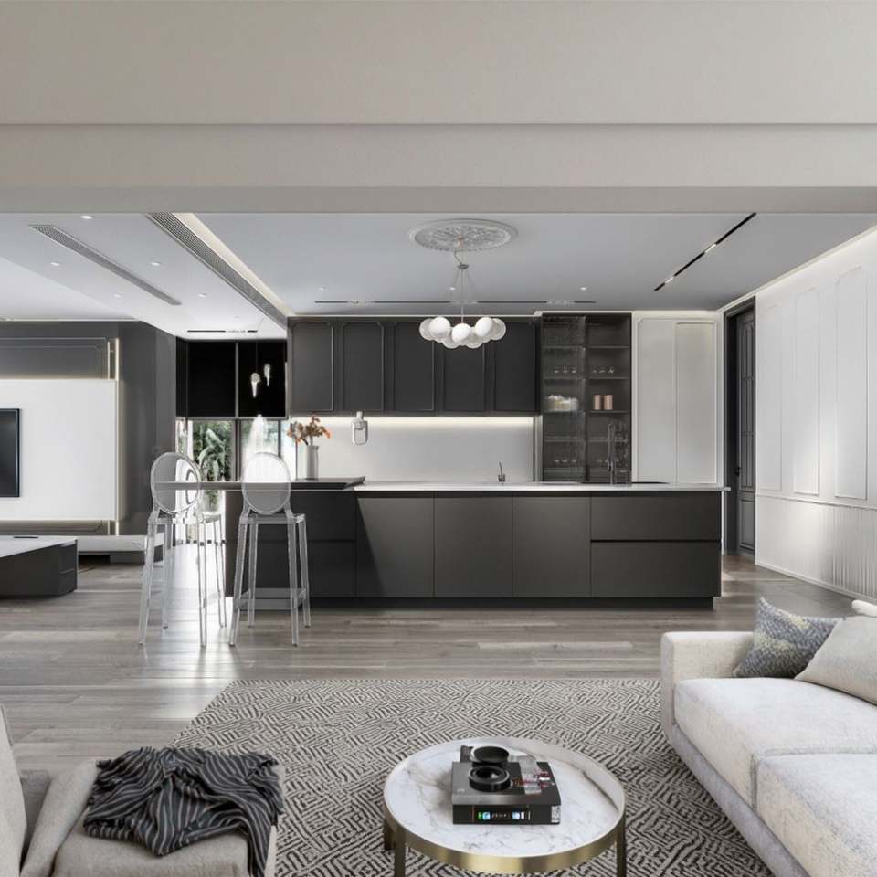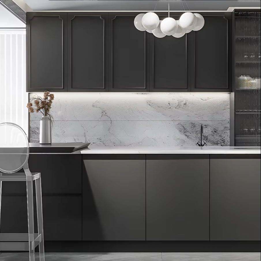 ตู้ครัวสไตล์มินิมอลฝรั่งเศสคุณภาพสูง วัสดุกันน้ำ รุ่นเฟอร์นิเจอร์ครัว พร้อมไอส์แลนด์ครัว