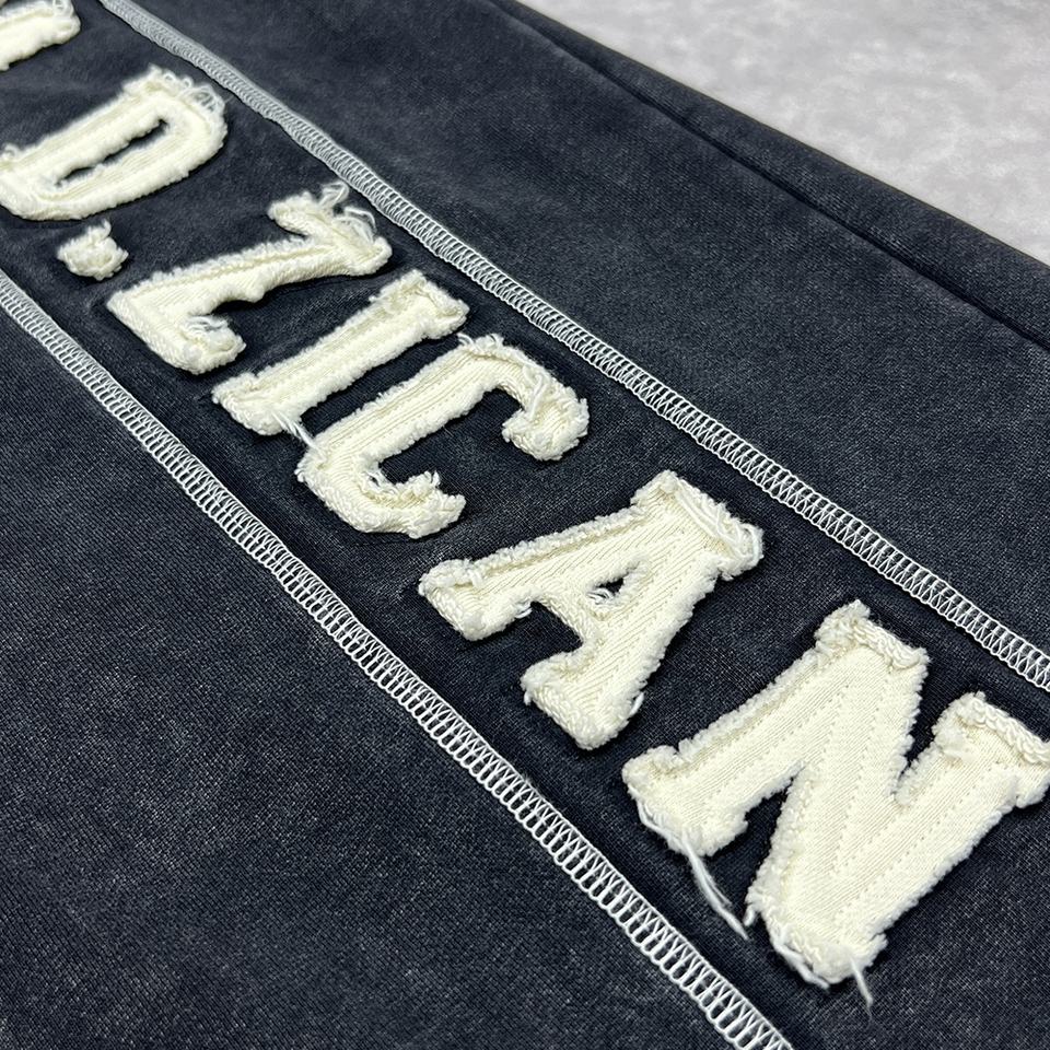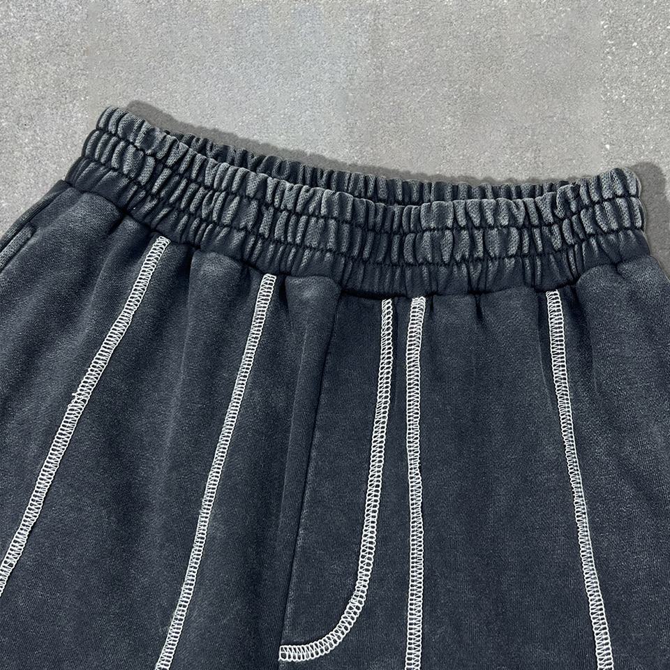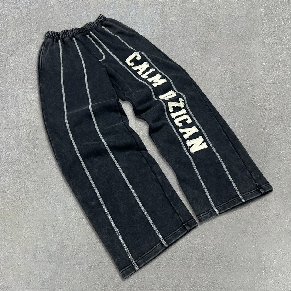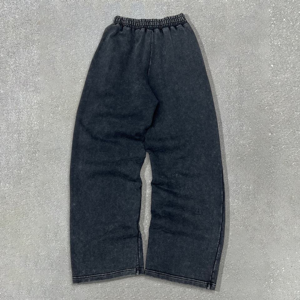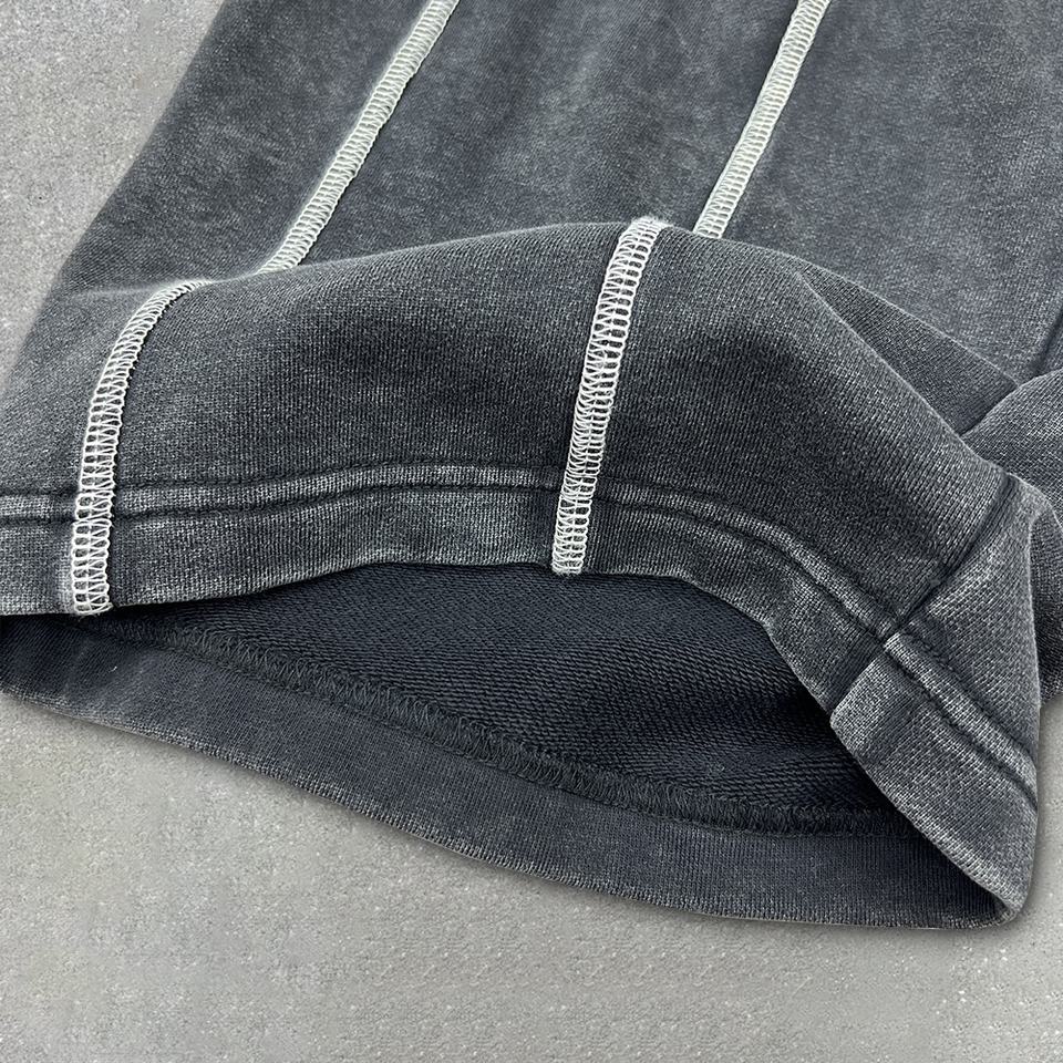 กางเกงวอร์มทรงโอเวอร์ไซส์ผ้าเฟรนช์เทอร์รี่คุณภาพสูง ปักลายตามสั่ง กางเกงแทรคพิมพ์ลายทาง ล้างสีแบบแอซิด ทรงขากว้างหลวม
