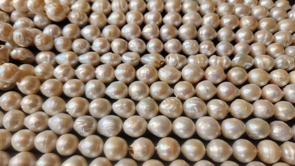 ลูกปัดไข่มุกน้ำจืดเส้นสายหลวมธรรมชาติที่ไม่ผ่านการรับรองจากบุคคลที่สาม8มม. ทำเครื่องประดับได้อย่างเรียบเนียน