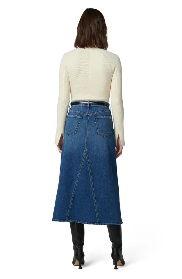 กระโปรงผ้ายีนส์เอวสูงสไตล์วินเทจแฟชั่นผ่าหน้า