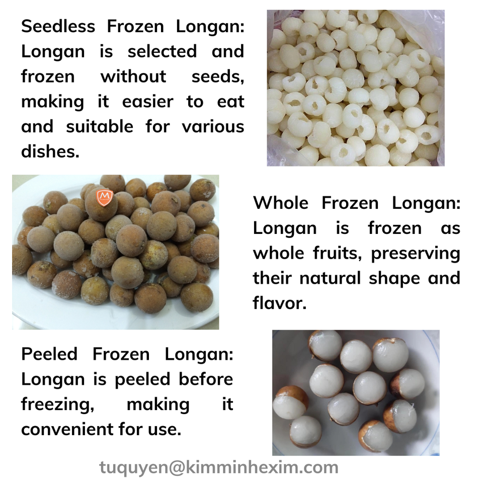 ลำไยแช่แข็งคุณภาพสูงจากเวียดนามสำหรับส่งออก กระบวนการ LQF บรรจุภัณฑ์สุญญากาศและบรรจุภัณฑ์แบบเป็นชุด ยี่ห้อ KMI เก็บรักษาที่อุณหภูมิ -18 องศาเซลเซียส