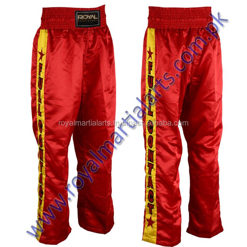 กางเกงซาตินคุณภาพสูงสำหรับคิกบ็อกซิ่งแบบเต็มตัว ชุดศิลปะการต่อสู้ระดับพรีเมียม