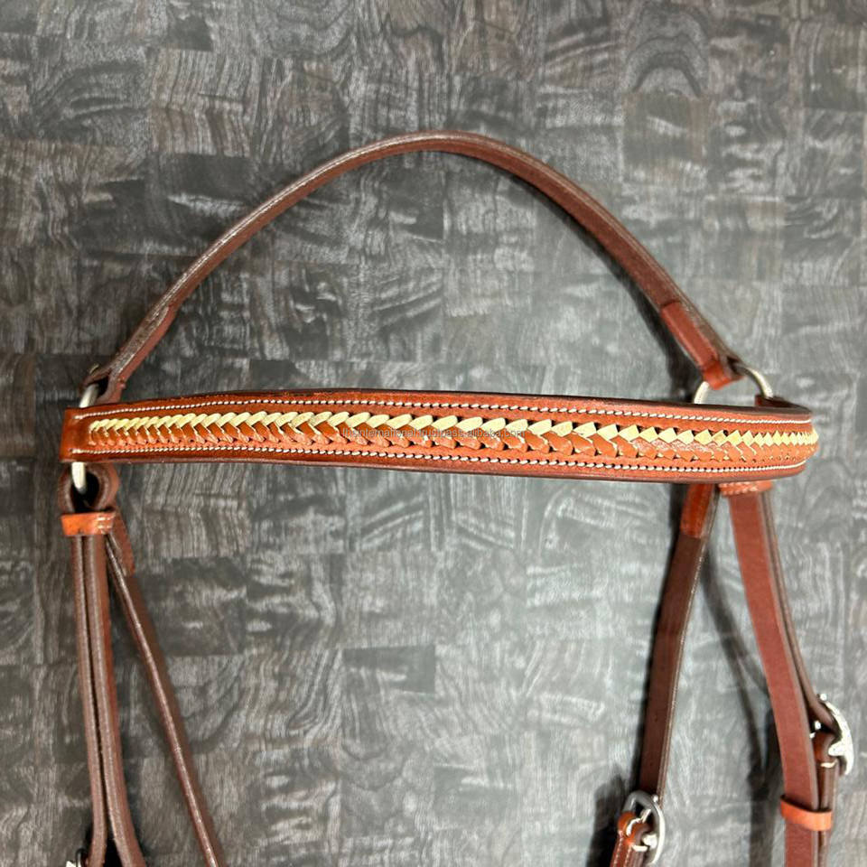 หนังวัวแท้2โทนสีขัดเงาทำจากทองเหลืองบังเหียนหนังวัวแท้