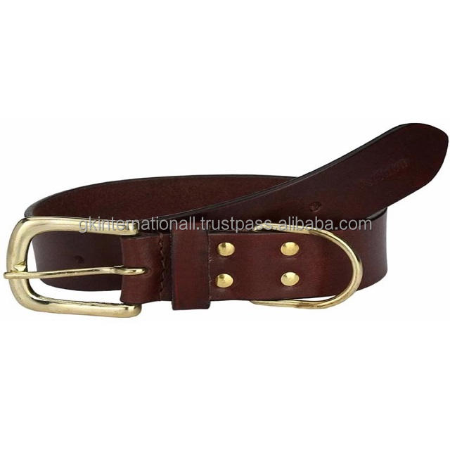 High Quality Full Grain Super Soft Handcrafted Brown Leather Dog Collar with Luxury Brass Plated Heavy Buckle D Ring & Rivets