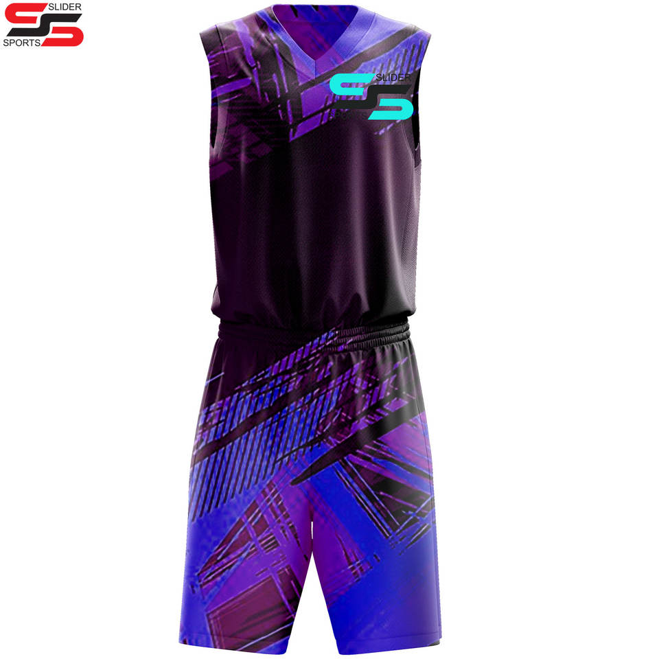ชุดกีฬาบาสเก็ตบอลของเด็กผู้ใหญ่ชุดเล่นกีฬาสีพื้นพิมพ์ซับลิเมชันเต็มรูปแบบ