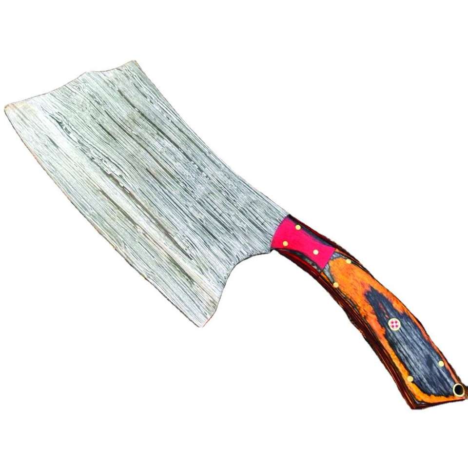 High Quality Full Tang Damascus Steel Chef Kitchen Cleaver Knife Customized Cleaver Knife With Leather Sheath
