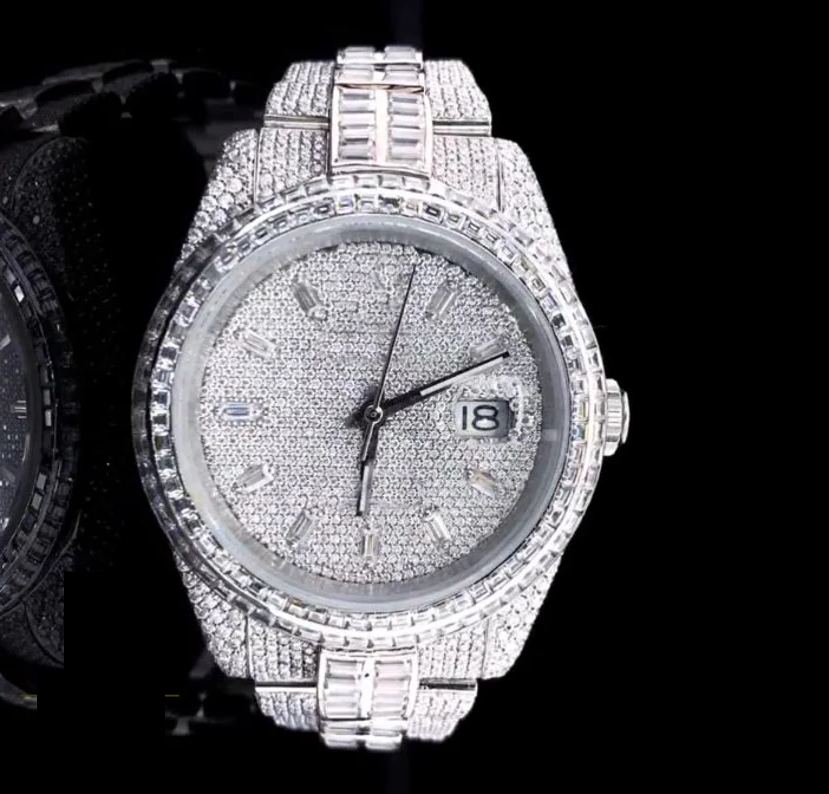 นาฬิกาอิโมซิสซาไนต์ทรงเพชรหมุนอัตโนมัติสำหรับผู้ชายทรงฮิปฮอปสแตนเลสสตีล