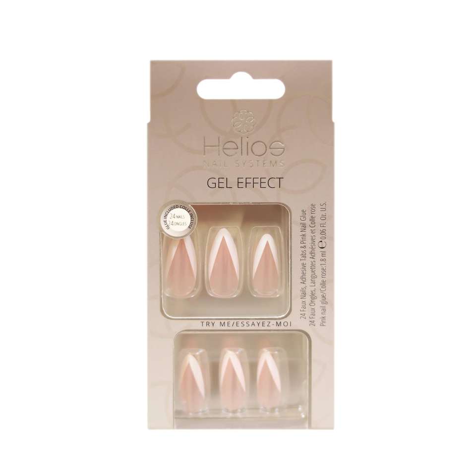 ชุดเล็บปลอมสไตล์เจลแบบฝรั่งเศสปลายยาวพร้อมกาวแบบมีสไตล์สำหรับเล็บนิ้วมือ