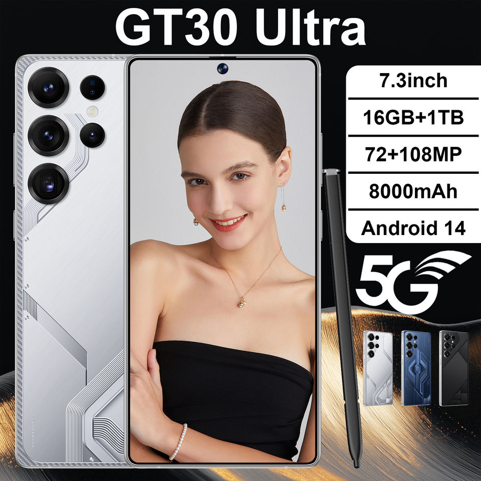 เครื่อง GT30อัลตร้า5G LTE สมาร์ทโฟนประสิทธิภาพการทำงานราบรื่น7.3นิ้ว2K 1TB Deca Core จดจำใบหน้า108MP CDMA สเปน