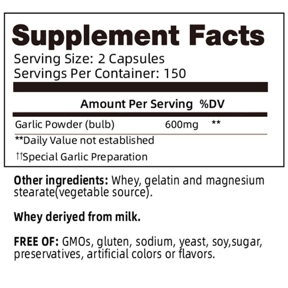 สารสกัดจากกระเทียมคุณภาพสูง 300 แคปซูล บำรุงสุขภาพหัวใจและหลอดเลือดสำหรับผู้ใหญ่ อาหารเสริมสุขภาพหัวใจและหลอดเลือด
