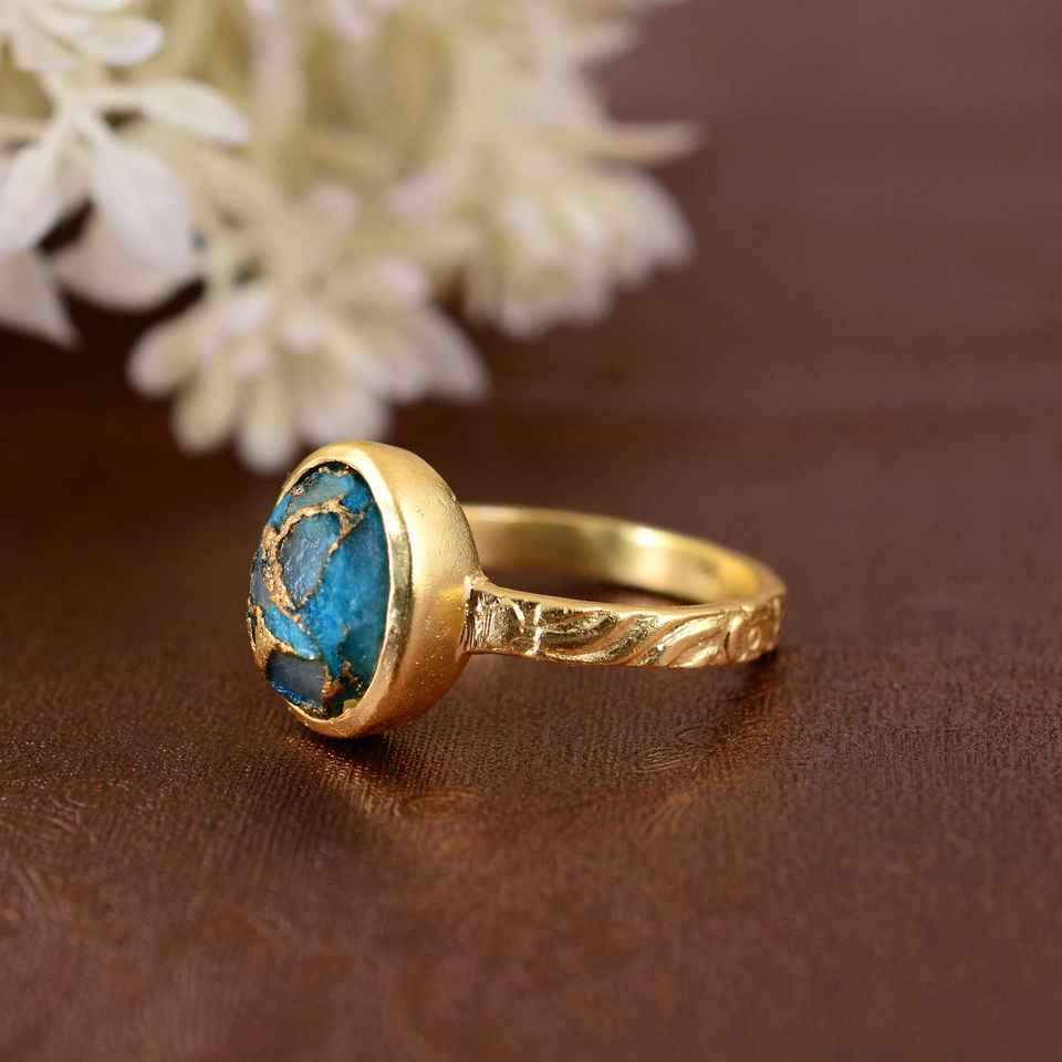 ผู้ผลิตแหวนพลอยคุณภาพสูงทองแดงธรรมชาติเทอร์ควอยซ์รูปไข่ 925 เงินสเตอร์ลิงชุดฝาชุบทองของขวัญผู้หญิง
