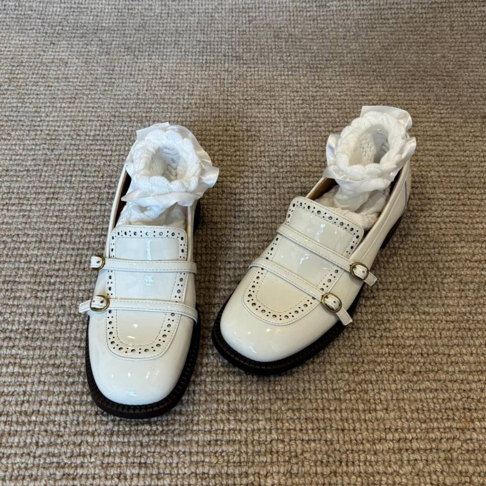 รองเท้าบัลเล่ต์หนังแท้คุณภาพสูงสำหรับผู้หญิง สไตล์เรโทร หัวตัดเงา ส้นหนา กันน้ำ น้ำหนักเบา สไตล์อังกฤษ