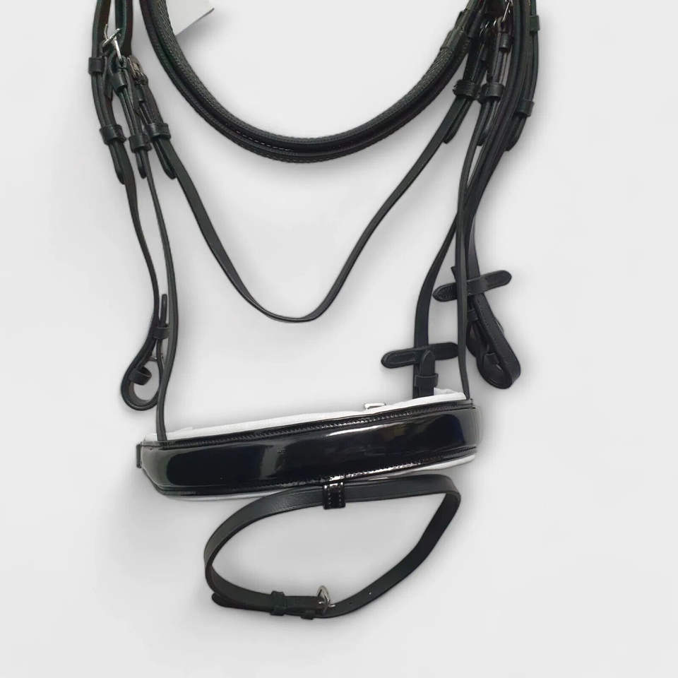 บังเหียนม้าหนังแท้คุณภาพสูงครอสโอเวอร์แบบไร้ตะเข็บเย็บแฟนซีและคริสตัลสำหรับการขี่