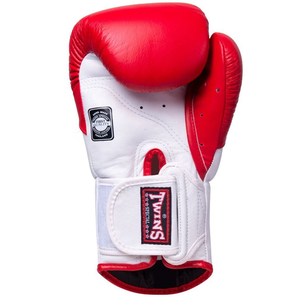 ถุงมือชกมวยหนังแท้คุณภาพสูง ผลิตตามสั่ง ยี่ห้อ Twins สีแดง-ขาว สำหรับฝึกซ้อมมวยไทยและ MMA