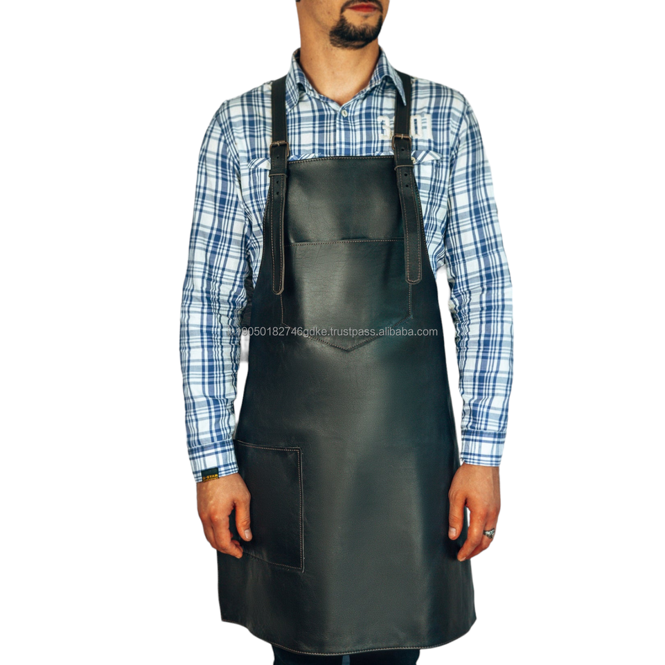 ผ้ากันเปื้อนทำงานหนังแท้คุณภาพสูงกระเป๋าทนทานสำหรับช่างตัดผมพ่อครัวมืออาชีพโลโก้ออกแบบได้ตามต้องการ