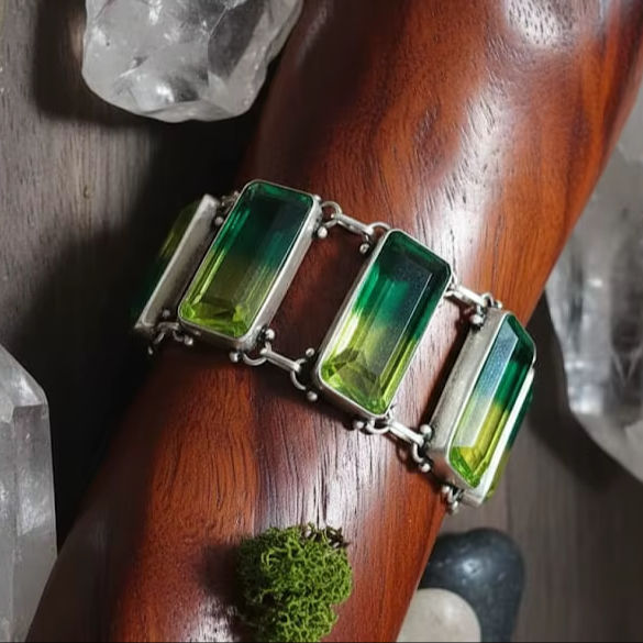 กำไลข้อมือเงินเยอรมันคุณภาพสูง ประดับด้วยหินธรรมชาติทรงสี่เหลี่ยมหลากสี งานแฮนด์เมด สไตล์ชาติพันธุ์ ลด 20% พร้อมของขวัญปีใหม่