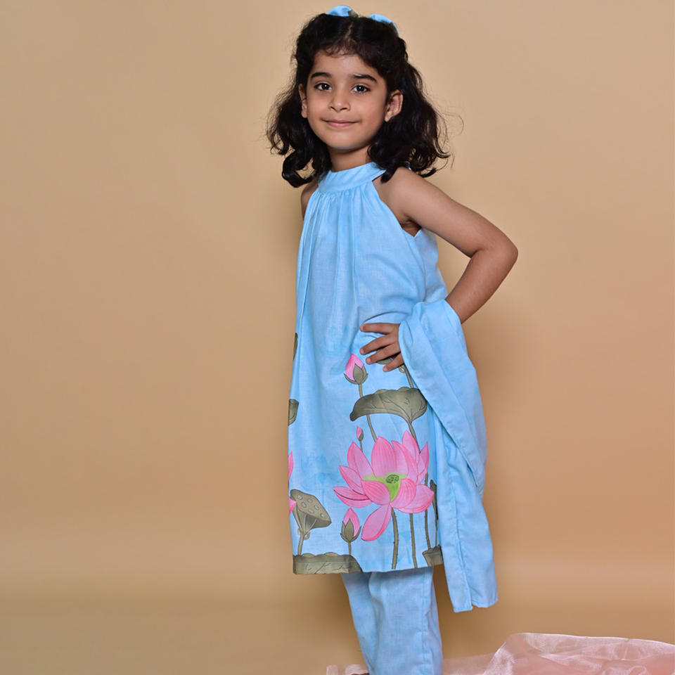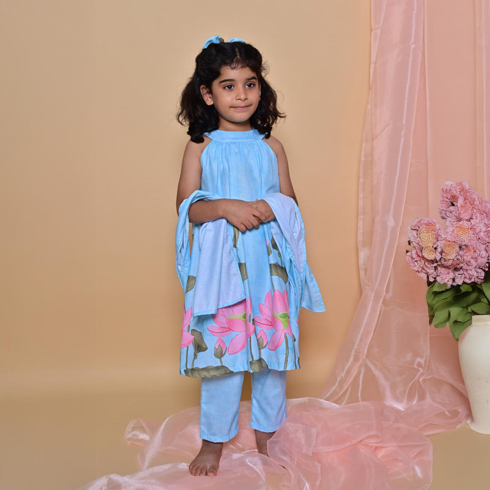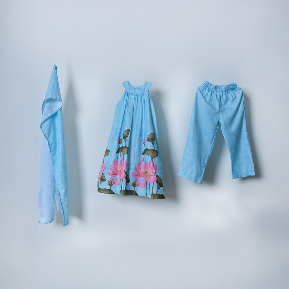 ชุดเสื้อทูนิคแขนกุดพิมพ์ลายดอกไม้ฟูร็อกคุณภาพสูง สีฟ้าอ่อน ฟูร็อก สำหรับสวมใส่สบายในงานเทศกาลและกิจกรรมครอบครัว