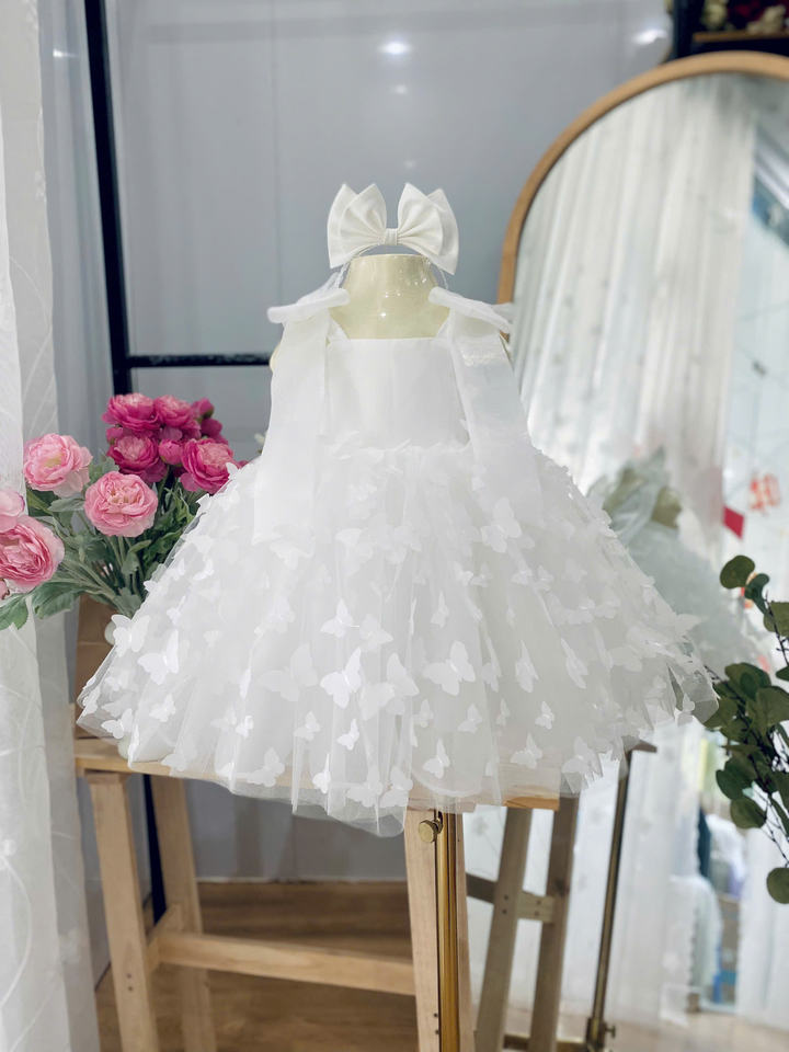 ชุดแมกซี่เดรสลำลองสำหรับเด็กผู้หญิง1-10ปี, เดรส3D แขนกุดผ้าคอตตอนตาข่าย