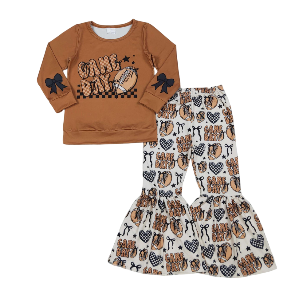 ชุดเสื้อผ้าเด็กวัยหัดเดินผู้หญิงชุดเล่นเกมฟุตบอลสีน้ำตาลแขนยาวมีโบว์รูปหัวใจชุดเด็กผู้หญิงมาใหม่ขายดี
