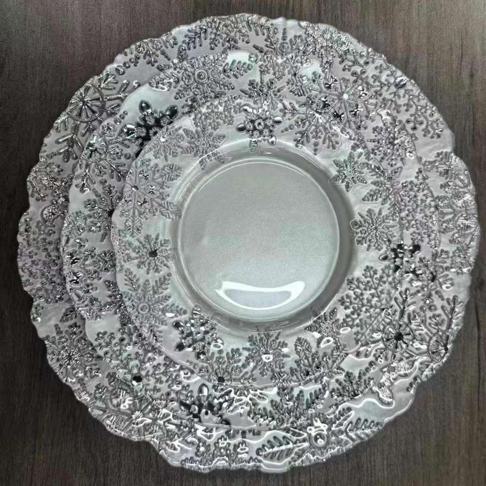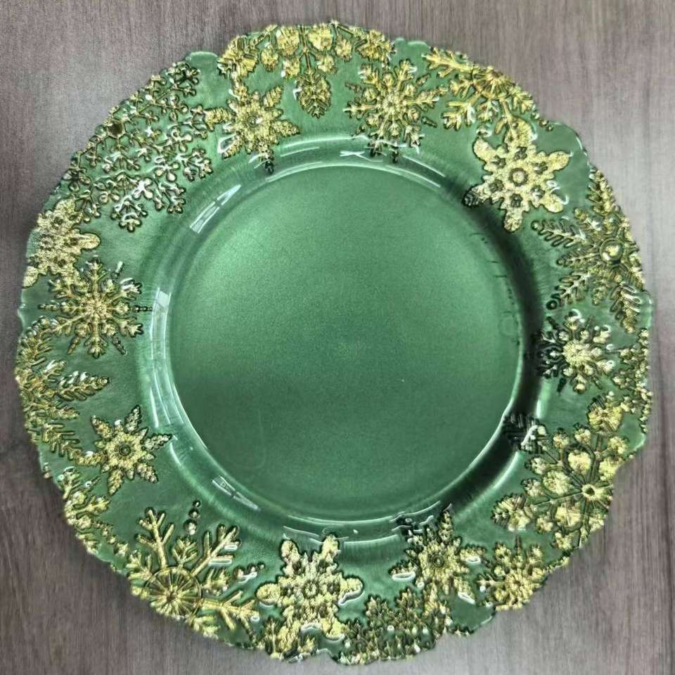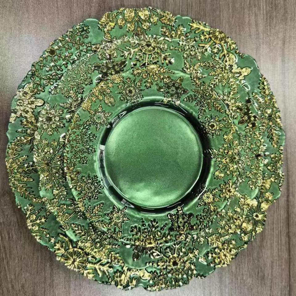 จานรองแก้วคุณภาพสูง ลายหิมะคริสต์มาสสีเขียว สำหรับงานแต่งงาน งานเลี้ยง และตกแต่งบ้าน ด้วยเทคนิคการแกะสลัก