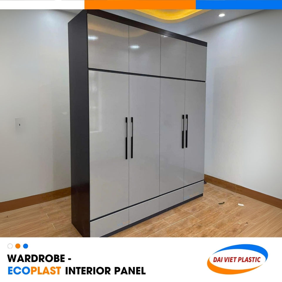 แผงตกแต่งภายในพีวีซีสีเทามันวาวสำหรับตู้เสื้อผ้าวัสดุเทรนด์ใหม่จากโรงงานชั้นนำของเวียดนาม