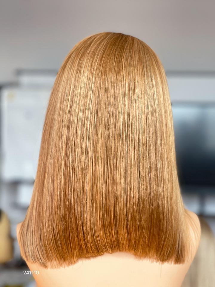 วิกผมแท้คุณภาพสูงแบบไม่ต้องใช้กาว HD โปร่งใส สำหรับผมตรงสีแดงประกาย แสกซ้าย สำหรับผู้หญิง