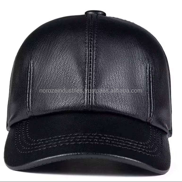 หมวกเบสบอลหนังแพะสีดำคุณภาพสูง