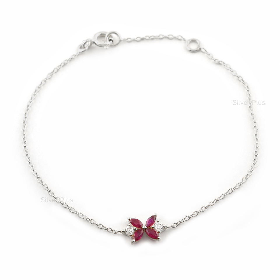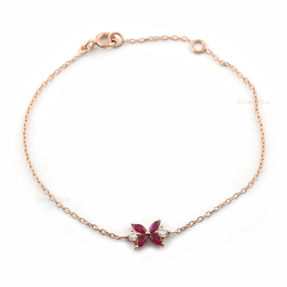 สร้อยข้อมือทองคำคุณภาพสูงพร้อมทับทิมธรรมชาติรูปทรงดอกไม้เพชรแท้ลายใบไม้ทอง14K สำหรับเป็นของขวัญผลิตใน10K/18K