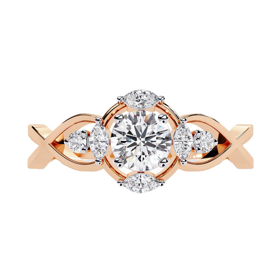 แหวนหมั้นทองคุณภาพสูง ดีไซน์อินฟินิตี้ น็อต ประดับเพชรทรงมาร์คีส์และทรงกลม ผลิตจากเพชรเลี้ยงในห้องปฏิบัติการ สำหรับผู้หญิง
